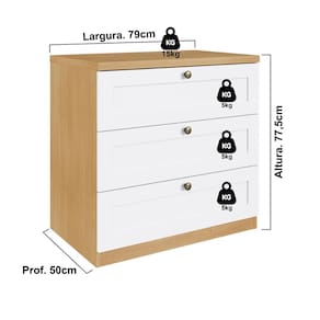 Recursos e Funcionalidades: - 3 gavetas espaçosas para organização de roupas, acessórios ou itens diversos do dia a dia. - Corrediças telescópicas que proporcionam um deslizamento suave, silencioso e mais seguro das gavetas. - Puxadores ponto em poliestireno, discretos e funcionais, complementando o visual clean do móvel.