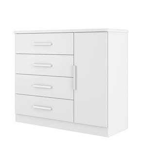 Cômoda Gênova 1 Porta e 4 Gavetas - Zanzini Móveis A Cômoda Gênova Plus é uma ótima opção de complemento para organizar seu ambiente. Possui 4 gavetas amplas e espaçosas, perfeitas para roupas dobráveis e acessórios. Possui tampo de 25mm e dispõe de uma porta com uma prateleira interna para você acomodar objetos como sapatos, caixas, livros, bolsas etc... A Cômoda Gênova é o móvel que faltava no seu dormitório.