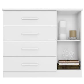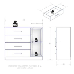 ESPECIFICAÇÕES: • Estrutura em MDP • Pintura UV • Tampo de 25mm • 1 Porta • Dobradiças metálicas • 4 Gavetas • Corrediças metálicas • Prateleira interna • Puxadores em MDF • Amplo espaço