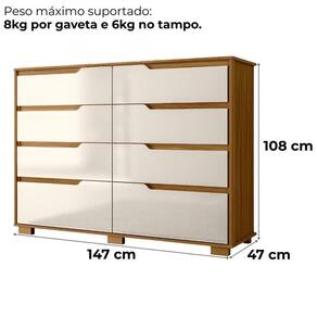 A Cômoda Georgia alia funcionalidade e design moderno para organizar seu ambiente com estilo. Estrutura em MDP (gavetas e tampo 15 mm / base e fundo 12 mm) com acabamento em pintura UV. Conta com 8 gavetas (sendo 2 gavetões) equipadas com corrediças metálicas, puxadores em cava e pés em PVC. Possui sistema de montagem flexível, permitindo instalar as gavetas em duas posições diferentes conforme a necessidade. Este produto será entregue em 02 volumes.