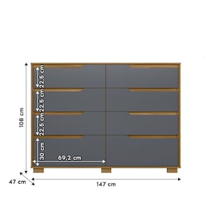 Marca: Moval | Altura: 108 cm | Largura: 147 cm | Comprimento: 47 cm | Altura Embalado: 20,4 cm | Largura Embalado: 51 cm | Comprimento Embalado: 151 cm | Peso: 66,375 kg | Peso Embalado: 66,375 kg | Modelo: Comoda Georgia Quarto com 8 Gavetas | Material: MDP | Precisa de montagem?: Sim, sugerimos a contratação do nosso serviço de montagem (para os CEPs em que o serviço está disponível) ou de algum profissional experiente de sua preferência | Descrição do tamanho: 151x51x20,4 cm | Garantia em meses: 03 meses de garantia para defeito de fabricação | Estado de origem: SP | Tonalidade: Multicolorido | Quantidade de gavetas: 8 | Origem: Loja DoceLar | Profundidade: 47 cm | Com portas: Não | É desmontável: Não | Fonte do produto: Loja DoceLar | Com pés: Sim | Material das corrediças: Telescopicas | É resistente à umidade: Não | Acabamento: Pintura | Material das gavetas: MDP | Estilo: Moderno | Material do corpo: MDP | É kit: Não | Material das dobradiças: Não se Aplica | Quantidade de prateleiras: 0 | Com corrediças: Sim | Inclui acessórios de montagem: Sim | Com alças: Sim | Com rodas: Não | Condição do item: Novo | Quantidade de gavetas com chave: 0 | Com prateleiras: Não | Tipo de móvel: Comoda | Quantidade de portas: 0 | Inclui manual de montagem: Sim | Com prateleiras ajustáveis: Não | Quantidade de caixas de embalagem: 2 Cor: Freijo/Cinza