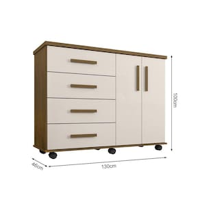 Cômoda Geval Encanto Com 04 Gavetas 02 Portas E Rodízios - Amêndoa/off White - Cor: Bege