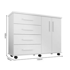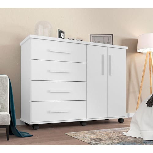 A Cômoda Encanto completa o ambiente com seu estilo moderno. Possuindo 4 gavetas e 2 portas aliado com qualidade e resistência, a cômoda proporciona praticidade, além de espaço para guardar as coisas no quarto em um produto cheio de estilo.Tipo: CômodaModelo: EncantoCor: BrancoMedidas:Altura: 100cmLargura: 130cmComprimento: 46cmATENÇÃOIMAGENS MERAMENTE ILUSTRATIVAS, PODENDO HAVER UMA PEQUENA VARIAÇÃO DE COR DEPENDENDO DE CADA TELA OU MONITOR. Marca: CONFFORRT CASA