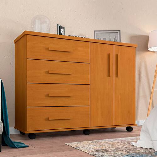 A Cômoda Encanto completa o ambiente com seu estilo moderno. Possuindo 4 gavetas e 2 portas aliado com qualidade e resistência, a cômoda proporciona praticidade, além de espaço para guardar as coisas no quarto em um produto cheio de estilo.