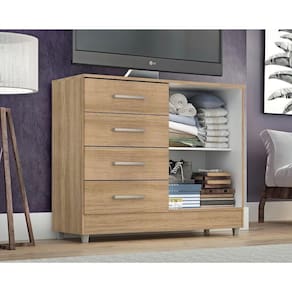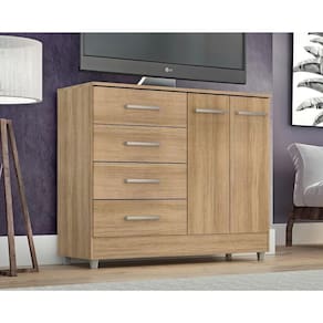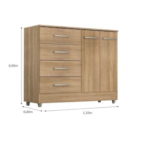 A cômoda Gisele com 4 gavetas e 2 portas é um móvel versátil e prático projetado para oferecer espaço de armazenamento para roupas, acessórios e outros itens pessoais. Com suas gavetas e portas, oferece diferentes opções de organização. Além das gavetas, a cômoda Gisele possui duas portas que podem ser abertas para revelar um espaço interno com 1 prateleira para guardar itens adicionais e contém uma superfície superior plana, que pode ser usada para colocar objetos decorativos, como vasos, porta-retratos ou Televisão. É importante verificar as dimensões da cômoda Gisele antes da compra para garantir que ela se ajuste adequadamente ao espaço disponível em seu quarto ou ambiente desejado. Certifique-se de seguir as instruções de montagem para uma montagem correta e segura.
