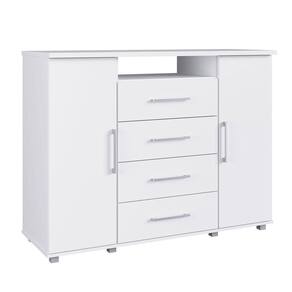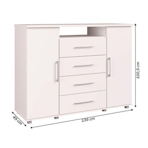 O(a) Cômoda Gold 2 Portas 4 Gavetas Branco - Irm Móveis é produzido em MDP na escala de brilho Brilhante e Fosco, e possui um grau de dificuldade de montagem: Médio.