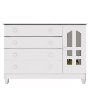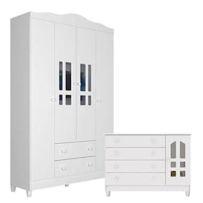 Cômoda Gran Selena e Guarda Roupa Infantil Ariel 4 Portas Branco Brilho - Carolina