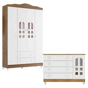 Cômoda Gran Selena e Guarda Roupa Infantil New Selena 4 Portas Branco Brilho Carolina