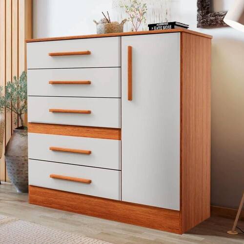 5 Gavetas que Suportam 5kg: Oferecem amplo espaço de armazenamento para roupas e objetos pessoais, cada uma suportando até 5kg de peso.