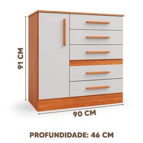 Dimensões da Cômoda: Largura 90 cm; Profundidade 46 cm; Altura 91 cm.