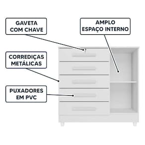 Largura: 99cm | Marca: Repleta | Profundidade: 43cm | Quantidade de caixas de embalagem: 2 | Requer montagem: Sim | Altura: 100cm | Modelo: Elegante | Tipo de móvel: Cômoda | Inclui manual de montagem: Sim | Cor: Branco