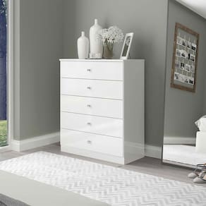 Caracter?sticas: Modelo: Grande Marca: Menu M?veis Material: Produzido em MDP de 12 e 15 mm Acabamento: UV Brilho Gavetas: 05 Corredi?a: Met?lica Puxadores: tipo Ponto em Alum?nio Cromado