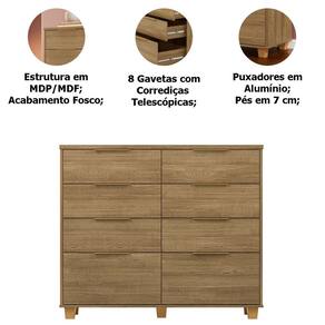 Dimensões da Cômoda Grande MDP/MDF 8 Gavetas Density: