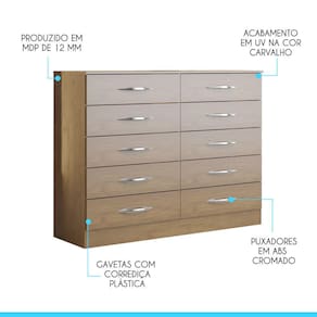 A Cômoda foi desenvolvida pensando em atender todas as suas necessidades do dia a dia com um design atual, unindo versatilidade, conforto e beleza. Possui dez gavetas que são perfeitas para manter tudo organizado. Produzido com materiais de excelente qualidade, garantindo a sua durabilidade. O melhor em móveis no design atual aliando conforto, qualidade e ótimos preços, só na Menu Móveis!