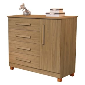 Seu design inteligente conta com 4 gavetas espaçosas e 1 porta com prateleira interna, que funciona como uma sapateira prática ou espaço extra para guardar roupas, acessórios, itens pessoais ou o que mais você precisar.
