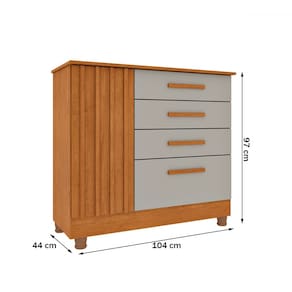 O(a) Cômoda Guarani 1 Porta 4 Gavetas Ripado 31299 Cinamomo/Off White - Tcil Móveis é produzido em MDP na escala de brilho Fosco, e possui um grau de dificuldade de montagem: Médio.