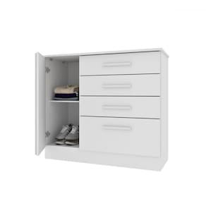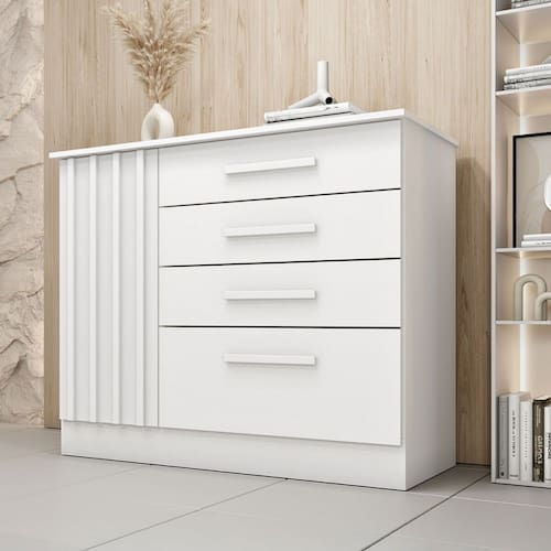 O(a) Cômoda Guarani 1 Porta 4 Gavetas Ripado Neve - Tcil Móveis é produzido em MDP na escala de brilho Fosco, e possui um grau de dificuldade de montagem: Médio.
