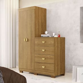 Cômoda Guarda-Roupa 4 Gavetas 2 Portas Cristal Nature - Vila Rica