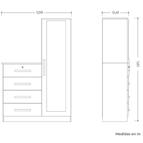 Dimensões da Cômoda Roupeiro: - Altura: 161 cm - Largura: 109 cm - Profundidade: 41 cm