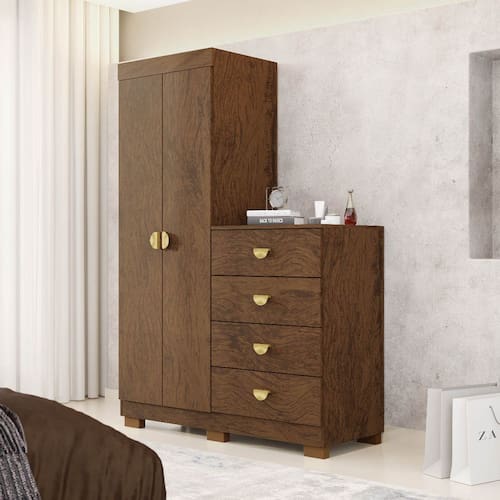 Cômoda Guarda-Roupa 4 Gavetas 2 Portas Cristal Imbuia Rústico - Vila Rica
