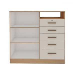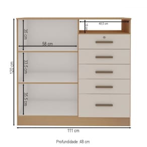 O(a) Cômoda Guatemala 2 Portas 5 Gavetas Freijó/Off White Laca - Genialflex é produzido em MDP na escala de brilho Brilho e Fosco, e possui um grau de dificuldade de montagem: Médio.