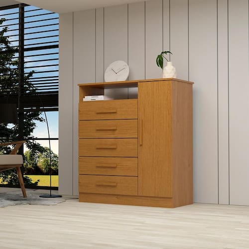 Introduzindo a Cômoda Guiana: a solução perfeita para organização e estilo em seu espaço. Feita inteiramente em MDF, esta peça combina durabilidade e beleza. Com 5 gavetas equipadas com corrediças telescópicas, manusear suas roupas será uma experiência suave e prática. Além disso, uma sapateira integrada e um nicho superior oferecem espaço adicional para guardar seus pertences com facilidade. Renove seu ambiente com a funcionalidade e elegância da Cômoda Guiana!