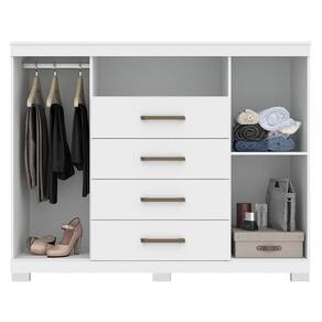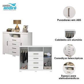 Comoda Havana Master com pés Branco: A Cômoda Havana Master é espaço e funcionalidade para seu quarto: duas portas (uma com cabideiro), quatro gavetas espaçosas e tampo. Pés elevam o móvel facilitando a limpeza e o acabamento traz um toque elegante ao ambiente.