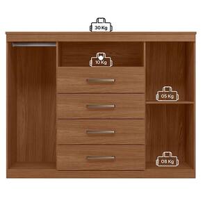 Comoda Havana Master com pés Jatobá: A Cômoda Havana Master é espaço e funcionalidade para seu quarto: duas portas (uma com cabideiro), quatro gavetas espaçosas e tampo. Pés elevam o móvel facilitando a limpeza e o acabamento traz um toque elegante ao ambiente.