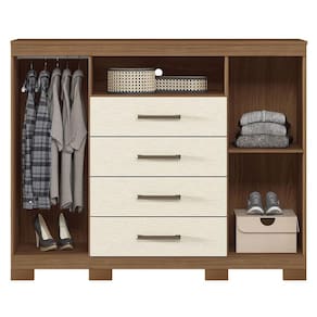 Comoda Havana Master com pés Jatobá Areia: A Cômoda Havana Master é espaço e funcionalidade para seu quarto: duas portas (uma com cabideiro), quatro gavetas espaçosas e tampo. Pés elevam o móvel facilitando a limpeza e o acabamento traz um toque elegante ao ambiente.