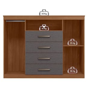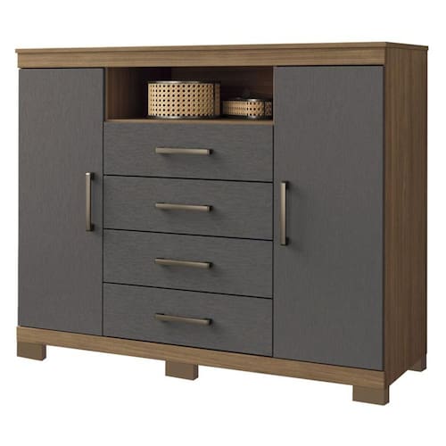 A Cômoda Havana Master é espaço e funcionalidade para seu quarto: duas portas (uma com cabideiro), quatro gavetas espaçosas e tampo. Pés elevam o móvel facilitando a limpeza e o acabamento traz um toque elegante ao ambiente.