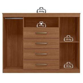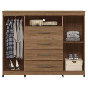 Comoda Havana Master com rodizio Jatobá: A Cômoda Havana Master é espaço e funcionalidade para seu quarto: duas portas (uma com cabideiro), quatro gavetas espaçosas e tampo. Pés elevam o móvel facilitando a limpeza e o acabamento traz um toque elegante ao ambiente.