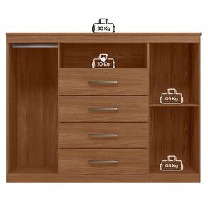 Comoda Havana Master Jatobá: A Cômoda Havana Master é espaço e funcionalidade para seu quarto: duas portas (uma com cabideiro), quatro gavetas espaçosas e tampo. Pés elevam o móvel facilitando a limpeza e o acabamento traz um toque elegante ao ambiente.