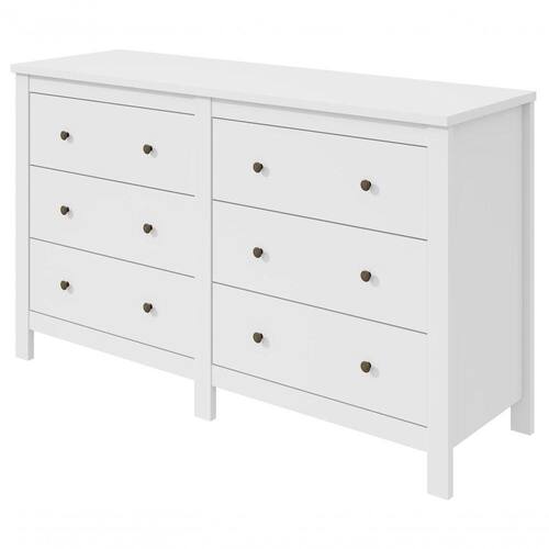 Produto em MDP/MDF; Pintura e acabamento em micro textura; Tampo de 25mm; Puxadores em metal; 06 gavetas; Gavetas com corrediças telescópicas; Pés robustos em MDF de 25mm; Fundo das gavetas e costas em HDF. Vantagens/Benefícios: Produzido com equipamentos de alta tecnologia; Produto avaliado e aprovado por um rigoroso controle de qualidade; Fácil montagem e manual de montagem simplificado; Design minimalista com um toque vintage; Acabamento com toque aveludado; Gavetas ideais para acomodação das roupas em maiores quantidades; Gavetas grandes e espaçosas com corrediças telescópicas; Tampo de 25mm para maior resistência; Pés robustos que garantem maior estabilidade.