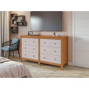 Produto em MDP/MDF; Pintura e acabamento em micro textura; Tampo de 25mm; Puxadores em metal; 06 gavetas; Gavetas com corrediças telescópicas; Pés robustos em MDF de 25mm; Fundo das gavetas e costas em HDF. Vantagens/Benefícios: Produzido com equipamentos de alta tecnologia; Produto avaliado e aprovado por um rigoroso controle de qualidade; Fácil montagem e manual de montagem simplificado; Design minimalista com um toque vintage; Acabamento com toque aveludado; Gavetas ideais para acomodação das roupas em maiores quantidades; Gavetas grandes e espaçosas com corrediças telescópicas; Tampo de 25mm para maior resistência; Pés robustos que garantem maior estabilidade.