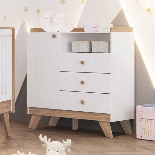 A Cômoda Confete da linha fantasia é produzida em MDF/MDP e conta com 3 gavetas com corrediças telescópica, 1 portas com usinagem e Pés em MDP 25 Mm. Desenvolvida com muito carinho para trazer satisfação e modernização no quartinho do bebê e é ideal para quem procura um produto compacto e funcional.