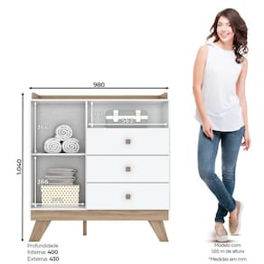 FICHA TÉCNICA: Acabamento: Pintura é UV/Pintura UV Texturizada. Cor Interna: Trama Branco Escala de Brilho: Brilho/Fosco. Material do Fundo: MDF Possui porta Objetos: Não. Qtd. Portas: 1 Und. Tipo Porta: Bater. Material da Porta: MDP Material da Dobradiça: Metal Material do Puxador Porta: Madeira Qtd. Gavetas: 3 Und. Material da Gaveta: MDP Material da Corrediça: Telescópica Material do Puxador Gaveta: Madeira Peso Máximo por Gaveta: Cada gaveta suporta até 3 Kg, a carga deve ser distribuída uniformemente. Possui Organizador de Gaveta: Não. Qtd. Prateleiras: 1 Und. Material da Prateleira: MDP Peso Máximo por Prateleira: A prateleira suporta até 8 Kg, a carga deve ser distribuída uniformemente. Pés Reguláveis: Não Produto Suporta até -Kg-: 25 Kg Material Principal: MDP/MDF Medidas Montado -A x L x P-: 104 x 98 x 43 Cm