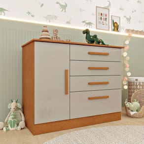 Invista na cômoda infantil 1 porta 4 gavetas 104cm harmonia espresso móveis e transforme o quarto do seu filho em um espaço mais funcional, bonito e com a organização que você sempre sonhou Produto Montado: Sim Acabamento da Gaveta: Pintura UV Acabamento da Porta: Pintura UV Acabamento da Prateleira: Pintura UV Ambiente Principal: Quarto Infantil codigo_ean: 7900288192776 Complexidade da Montagem: Média: pode ser montado por mais de uma pessoa e/ou necessite de maior conhecimento para montagem Cor: Cinamomo/ Off White Cor do Produto: Cinamomo/ Off White Cor Flex: Não Cor Interna: Cinamomo Escala de Brilho: Semi-Brilho Escala de Brilho da Gaveta: Semi-Brilho Escala de Brilho da Porta: Brilhante Escala de Brilho da Prateleira: Semi-Brilho Gaveta com Chave: Não Itens Inclusos: 1 Cômoda, Kit Ferragens e Manual de Montagem Linha ou Coleção: Harmonia Manual de Montagem e Instalação: https://product-hub-prd.madeiramadeira.com.br/976366872/documents/b70a4b1c-ebba-474b-99d4-bad8af39ccbb306339647717522494137671.pdf Marca: Espresso Móveis Material da Gaveta: MDP Material da Porta: MDP Material da Prateleira: MDP Material do Fundo: mdf Material do Puxador da Gaveta: MDF Material do Puxador da Porta: MDF Material Principal: MDP modular: Não Montagem Flex: Não Necessita Montagem: Sim Origem do Produto: Nacional Peso: 34,08 kg Peso Máximo por Gaveta: 5 kg Peso Máximo por Prateleira: 5 kg Porta Janelada: Não Possui Espelho: Não Possui Nichos: Não Possui Pés: Não Possui Portas: Sim Possui Prateleiras: Sim Quantidade de Gavetas: 04 Gavetas Quantidade de Prateleiras: 01 Prateleira Recomendações de Uso, Manutenção e Limpeza: A limpeza do móvel deve ser efetuada somente com pano macio e seco. Não utilizar produtos abrasivos ou similares, tais como: Cera, álcool, detergentes, tinner, lustra móveis, entre outros. Sapatas Niveladoras: Sim Sistema de Montagem: Pregos, Parafusos. Cavilha Suporta Até (kg): 30 kg Tipo de Cômoda: Infantil Tipo de Corrediça da Gaveta: Metálica Telescópica Tipo de Dobradiça/Corrediça da Porta: Metálica Tipo de Porta: Bater Tipo de Puxador da Gaveta: Externo Tipo de Puxador da Porta: Externo