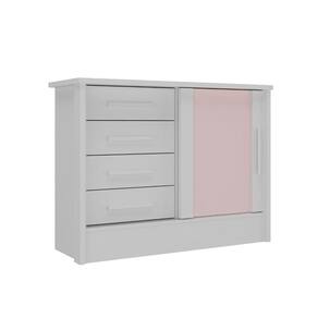 Cômoda Infantil 1 Porta 4 Gavetas Maya Espresso Móveis Branco/Rosa