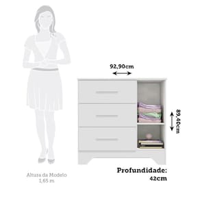 Desenvolvida toda com estrutura em MDF de reflerestamento e acabamento em pintura UV atóxica. Possui porta com dobradiças metálicas, gavetas que deslizam sob corrediças telescópicas e prateleira interna que suporta até 5kg, tudo para acomodar as peças com organização da sua preferência. Pode ser montada com rodapés usinado (torneado) ou retrô, ambos acompanham o produto. Aproveite para adquirir a sua agora!! Acabamento da Gaveta: Pintura UV Acabamento da Porta: Pintura UV Acabamento da Prateleira: Pintura UV Ambiente Principal: Quarto de Bebê Complexidade da Montagem: Alta: deve ser montado por um montador especializado Cor: Branco Brilho Cor do Produto: Branco Brilho Cor Interna: Linho Escala de Brilho: Brilhante Escala de Brilho da Gaveta: Brilhante Escala de Brilho da Porta: Brilhante Escala de Brilho da Prateleira: Semi-Brilho Gaveta com Chave: Não Informações Complementares: Pintura atóxica. Itens Inclusos: 1 Cômoda, Kit de Ferragens e Manual de Montagem Linha ou Coleção: Liam Manual de Montagem e Instalação: https://product-hub-prd.madeiramadeira.com.br/929366/documents/a2d2a3ee-c0fd-41a5-814f-cb078a5920d82200639281917228763267502.pdf Material da Gaveta: MDF Material da Porta: MDF Material da Prateleira: MDF Material do Fundo: HDF 2,5mm Material do Puxador da Gaveta: MDF Material do Puxador da Porta: MDF Material Principal: MDF Montagem Flex: Sim, pode ser montado com rodapé retrô ou torneado/usinado. Necessita Montagem: Sim Origem do Produto: Nacional Peso: 33,2 kg Peso Máximo por Gaveta: 4 kg Peso Máximo por Prateleira: 5 kg Possui Espelho: Não Possui Nichos: Não Possui Pés: Não Possui Portas: Sim Possui Prateleiras: Sim Possui Trocador: Não Quantidade de Gavetas: 03 Gavetas Quantidade de Prateleiras: 01 Prateleira Recomendações de Uso, Manutenção e Limpeza: Para limpeza utilizar somente pano limpo e macio, ligeiramente umedecido em água (apenas o bastante para remover a poeira), seguido de um pano seco. Sapatas Niveladoras: Sim Sistema de Montagem: Parafusos autoatarraxantes, conjuntos minifix, cavilhas de madeira, acessórios plásticos e metálicos Suporta Até (kg): 40 kg Tipo de Corrediça da Gaveta: Metálica Telescópica Tipo de Dobradiça/Corrediça da Porta: Metálica Tipo de Porta: Bater Tipo de Puxador da Gaveta: Externo Tipo de Puxador da Porta: Externo