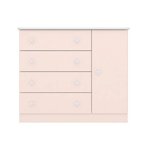 Cômoda Infantil 1 Porta e 4 Gavetas Doce Sonho - Qmovi Com a Cômoda Doce Sonho você terá maior funcionalidade e elegância no quarto do bebê. Ela possui amplo espaço para guardar e organizar os pertences de forma funcional para o dia a dia. Seus puxadores exclusivos em forma de estrela vão transformar o ambiente deixando-o mais divertido e charmoso.