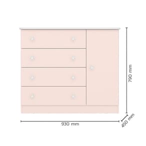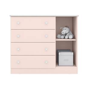 ESPECIFICAÇÕES: Estrutura em MDP Pintura UV atóxica 1 Porta 4 Gavetas Corrediças metálicas Puxadores em forma de estrela 1 Prateleira interna Sistema antitombamento Maior organização e praticidade