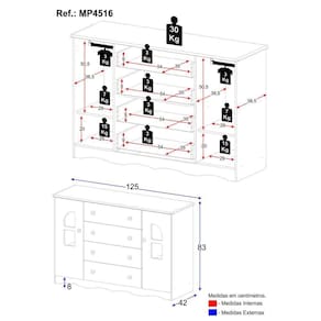 Altura: 83cm | Largura: 125cm | Profundidade: 42cm