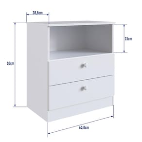 Com dimensões de 60,8x68x38,5 cm e peso de 16,65 kg, essa cômoda é compacta e leve, facilitando sua movimentação e encaixe no ambiente. Ela suporta até 16 kg e possui duas gavetas com capacidade de 3 kg cada, oferecendo espaço para organizar os pertences do seu bebê.