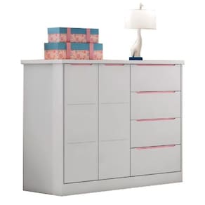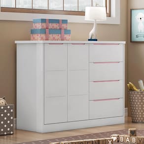 Cômoda Infantil 2 Portas 4 Gavetas Lilly P04 Branco/Rose - Mpozenato