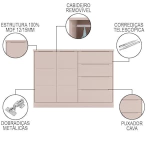 Altura: 92 cm | AssemblyRequired: Sim, sugerimos a contratação do nosso de montagem (para os CEPs em que o está dispon | Color: Rosê | ColorFamily: Rosê | ColorSimple: Rosê | ColorSupplier: Rose | Cor: Rosê | Gênero: Unissex | Largura: 130 cm | Manual: Sim | Material: MDF 15 mm | MaterialFamily: MDF | Model: Lua | Origem: | OriginCountry: | OriginState: PR | Peso: 62 kg | ProductContents: 1 Cômoda | ProductHeight: 92 | ProductInstructions: Produto para uso em ambiente interno, nao devendo ficar exposto ao sol, calor e umidade excessivos. | ProductLength: 52 | ProductWarranty: 90 dias após o do produto | ProductWeight: 62 | ProductWidth: 130 | Profundidade: 52 cm | Requere montagem: Sim | SizeDescription: 92 x 130 x 52 cm | SupplierSimpleName: Cômoda Infantil 2 Portas 4 Gavetas Lua P04 Rose - Mpozenato