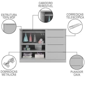 Conteúdo da embalagem: 1 Cômoda.