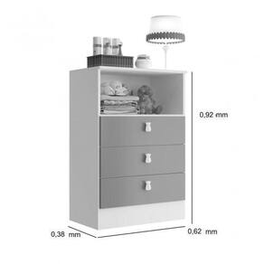 Descrição: A Cômoda Infantil 1330 da Espresso Móveis é produzida em chapa de MDP 15 mm, possui três gavetas com corrediça telescópica, proporcionando melhor deslizamento das gavetas. Possui puxadores em forma de urso.
