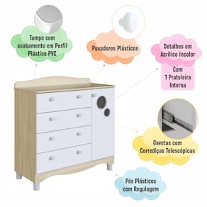 BenefíciosTransforme o quarto do seu bebê com mais praticidade e organização! Garanta já a Cômoda Fraldário Linha Encanto e tenha tudo sempre à mão!