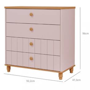 A Comoda Infantil 4 Gavetas com Pes em MDF Livia Permobili e perfeita para encantar o quarto do seu pequeno. Feita em MDF com pintura UV, ela e duravel e charmosa. Suas quatro gavetas espacosas com corredicas telescopicas facilitam a organizacao. Os puxadores de madeira macica e os cantos arredondados, assim como os pes torneados, agregam delicadeza e estabilidade. Cada gaveta suporta ate 3 kg, ideal para roupas, brinquedos e mais. Transforme o cantinho do seu filho com a Comoda Infantil Livia 4 Gavetas.
