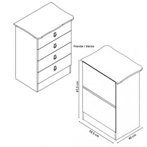 Características: 4 Gavetas 4 Puxadores em formato de urso Acabamento semi-brilho Corrediças telescópicas Estrutura em chapa de MDP de 15 mm Estrutura puxadores em Plástico Não possui pés Peso suportado nas gavetas 2 kg